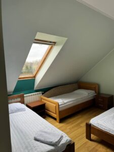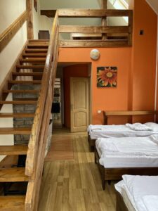 Стаціонарний 4-х поверховий корпус має 4-х місні, 2-рівневі номери по 3-5 або 6 чоловік в кімнаті. Ліжка одноярусні. Всі зручності (душ і туалет) розташовані в номері. Всі кімнати світлі і просторі з видом на гори. Сучасний ремонт. Кожен номер декоровано в своєму стилі, наприклад: «Оранж», «Лаванда», «Морський», «Сіті». У кімнатах є все необхідне обладнання: шафа,тумбочки,комод.